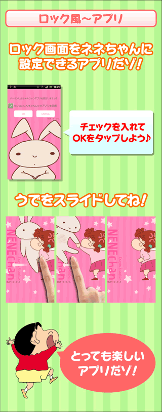 ロック風アプリ ネネちゃんのしあわせうさぎ 説明 | クレヨンしんちゃん